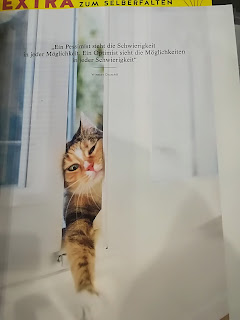 Zum Probelesen bekam ich das aktuelle Heft. Das Titelthema : Heute ist ein guter Tag für einen guten Tag ist vorne aufgeklebt, so das ich es ablösen kann. Ich werde mir einen kleinen Rahmen besorgen - ich finde das gehört "gewürdigt".